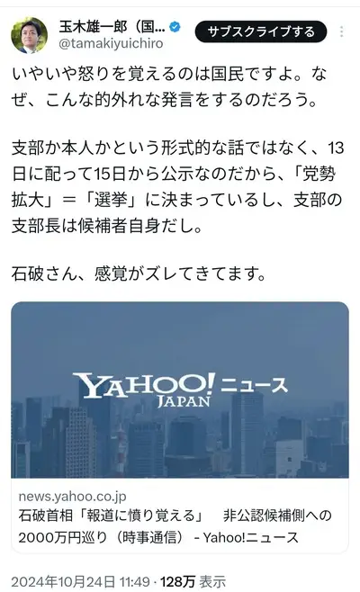 国民民主党さん、自民批判をしてしまい支持者達に怒られる「他の野党と同じ土俵に上がるな」