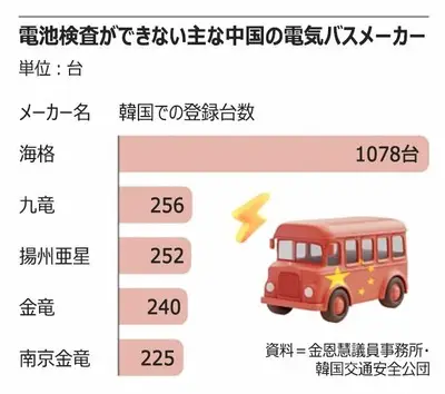 【悲報】韓国で走る中国製EVバス、中国メーカーの情報提供拒否によりバッテリーの安全検査困難のロシアンルーレット状態だと判明www