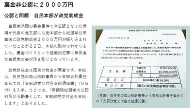 【しんぶん赤旗】自民本部、裏金非公認に政党助成金2000万円を公示直後に振り込み 公認と同額