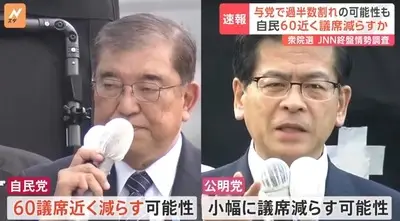 【速報】JNN衆院選調査 自公過半数割れ 立憲国民民主れいわ大幅議席増wwww