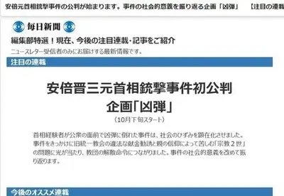 【速報】毎日新聞「安倍晋三氏への銃撃は社会的意義があった」新連載PRで批判刹到→謝罪「テロ肯定ではない、不適切な表現だったと考えております」
