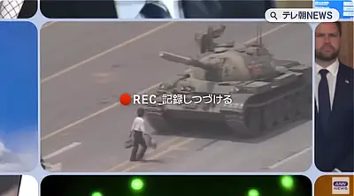 【画像】テレ朝ニュースのアイキャッチ、六四天安門事件のシーンで「REC 記録しつづける」の文字