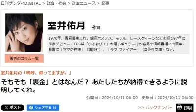 室井佑月氏が裏金ではないと開き直るれいわ・大石晃子氏を「キチンと説明しろ!」厳しく批判