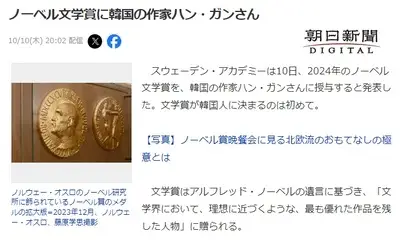 【速報】韓国、ノーベル賞を受賞wwwwwwwww