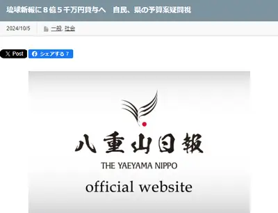 【速報】沖縄県・県議会、琉球新報社に8億5300万円を長期無利子貸与を予算案に盛り込む 自民党が異議「いかがなものか」