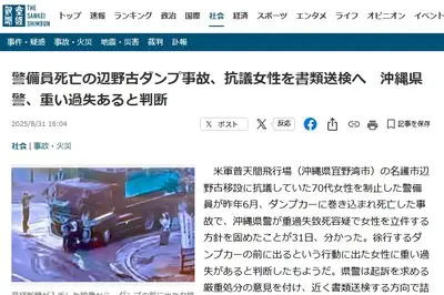 【辺野古ダンプ事故】沖縄県警が重過失致死容疑で女性を立件する方針「重い過失あると判断」