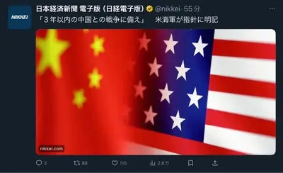 【悲報】アメリカ「三年以内に中国と戦争する想定してます」