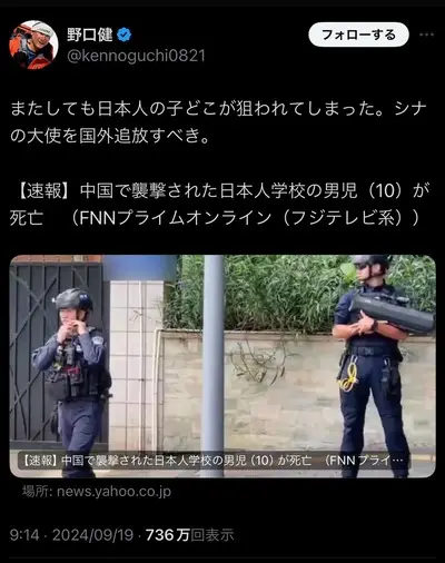 【日本人男児刺殺】中国「もう終わり、終わったこと」官製メディア沈黙、SNSへの投稿を続々削除開始