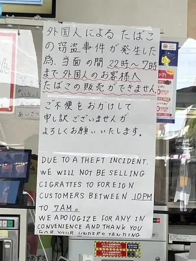 【悲報】ミニストップ、外国人のタバコ窃盗事件を理由に「夜間は外国人にタバコ販売拒否の張り紙」人権侵害の指摘受け、謝罪