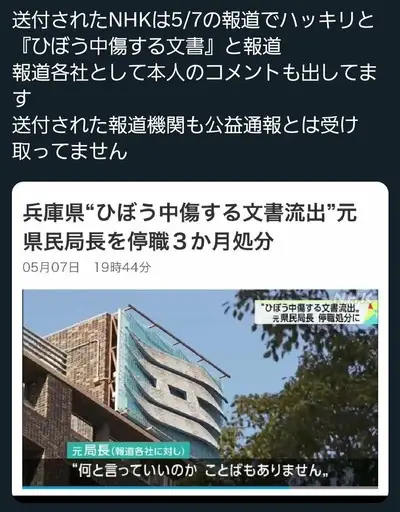 【速報】NHK「これただの誹謗中傷では?」、斉藤知事のパワハラを公益通報した元局長にインタビュー、自殺