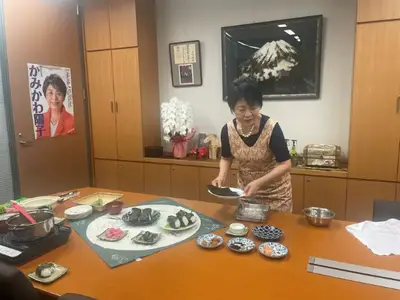【画像】上川外相「みんなで食べることが大事」エプロン姿でおにぎり作り、朝食をスタッフに振る舞う SNS「国民には中国ブイ撤去が大事」
