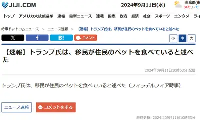 【速報】トランプ氏は、移民が住民のペットを食べていると述べた