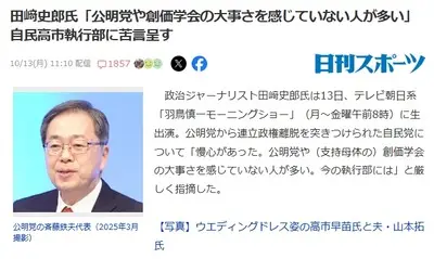 【あらら】田﨑史郎氏「公明党や創価学会の大事さを感じていない人が多い」
