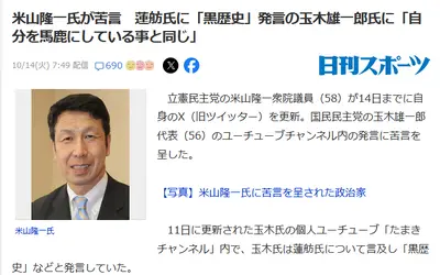 米山隆一氏が苦言 蓮舫氏に「黒歴史」発言の玉木雄一郎氏に「自分を馬鹿にしている事と同じ」