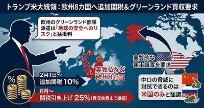 【速報】米国政府、グリーンランドに部隊派遣などした英独仏8カ国から輸入品に追加関税「6月1日からさらに引き上げる、グリーンランド買収成立まで永続的だ」