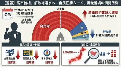 【速報】週刊文春予測2026衆院選 情勢予測は 高市早苗圧勝 中道連合は爆散 国民民主が野党第1党か