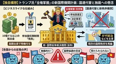 【速報】トランプ米政権、紛争解決の新国際機関の設置を検討、構想を発表 「初代議長はトランプ氏、トランプ氏に全権を委ねる」