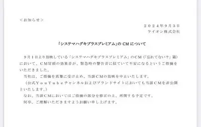 【動画】LION ライオン株式会社、テレビCM冒頭に『Jアラート』を使用?クレーム殺到で放送中止「今みんな敏感」「確かにこれは」