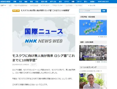 ■NHK速報■ ロシアの首都モスクワ、ドローンよる連続空襲を受けている模様 少なくとも10機の撃墜を確認