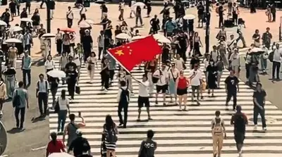 【速報】渋谷スクランブル交差点で巨大な中国国旗「渋谷は中国領と主張」隣通った女性が明らかにブチ切れてるwww