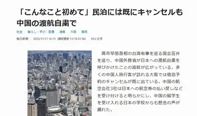 【速報】毎日新聞が報じる 「こんなこと初めて」民泊には既にキャンセルも←中国人経営者じゃねーか!!