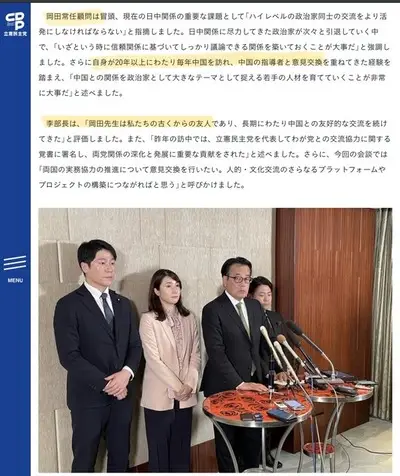 【緊急】立憲・岡田、20年以上も中国共産党幹部と定期的に会い続けていることが判明「内容は完全非公開」