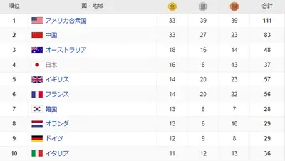 【パリ五輪】日本、金メダル16個目獲得 海外五輪最多に並び、開催国フランスを抜き総数で第4位に浮上