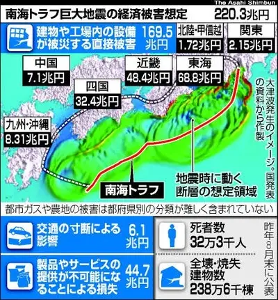 【悲報】南海トラフ大地震の想定被害総額220兆円、死者32万人、全壊238万棟