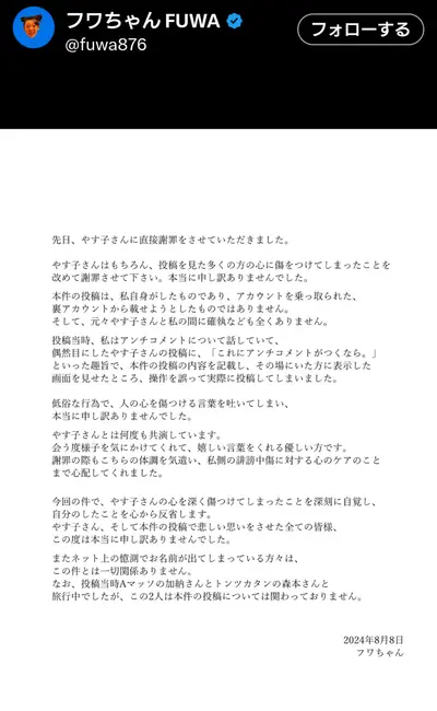 【速報】フワちゃんがお気持ち表明「『これにアンチコメつくなら』って遊んで画面見せてたら間違えて投稿してしまった」さらに炎上している模様