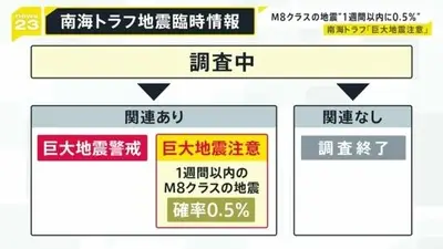 【速報】南海トラフ地震臨時情報を発表「巨大地震が発生する可能性調査」最短2時間後に『巨大地震警戒』「巨大地震注意」『調調査終了』