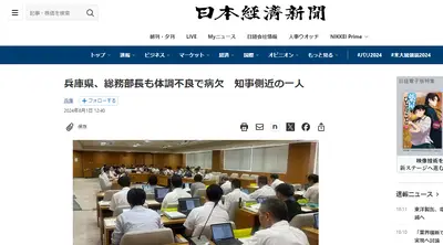 【兵庫県】総務部長も体調不良で病欠 知事側近の一人 3人の幹部が現場を離れる・・・