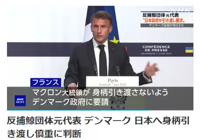 【反捕鯨団体】仏マクロン大統領が圧力「引き渡すな」日本当局「引き渡し請求」デンマーク「・・・(いいよ日本にする)」非公式で応じる意向伝える