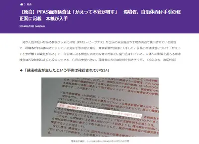 日本政府、PFAS血液検査を禁止、風評被害が発生する恐れがあるため