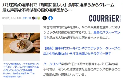 英国選手団、パリ選手村の食事に激怒「卵もない。鶏肉もない。炭水化物もない。肉は生焼けで出てくる、なんだこれ」タヒチ組「絶景とVIP飯、豪華客船宿泊です」