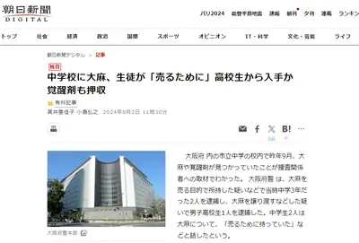 【速報】大阪の中学校かシャブ漬け寸前で崩壊、中学生が大麻や覚醒剤を所持「売るために持っていた」