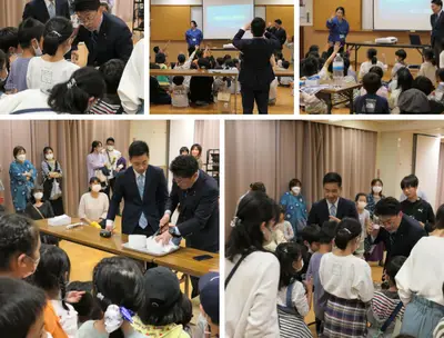 鬼木防衛副大臣、地元の児童らが集まるイベントで自衛隊から提供された南極の氷を配った模様 しんぶん赤旗「はい公職選挙法」