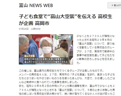 【子ども食堂】パヨ高校生「第73爆撃団B-29計182機はry...戦時中を再現した飯だ食え」子ども「普通に食わせろ」