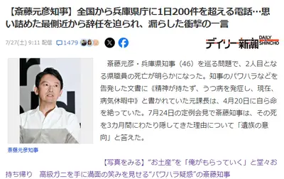 【悲報】兵庫県・斎藤知事が辞めないせいで苦情の電話が殺到。応対する職員が病んでしまう・・・