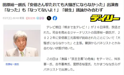 【朝生】田原総一朗氏「安倍さん撃たれても大騒ぎにならなかった」山口准教授「私の認識ではなった」たかまつ氏「なったと思います」古市氏「少なくとも動揺が走った」