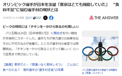 【悲報】パリ五輪、選手村厨房の運営が環境テロリストだった模様 炭素排出削減で野菜中心となり肉不足で選手たちが栄養失調にwwww