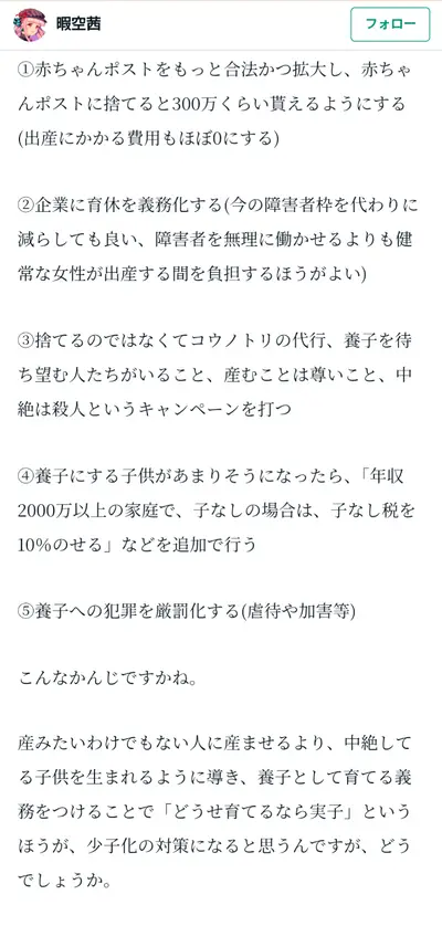 【朗報】都知事候補ひまそらあかね氏が考えた過去の少子化対策に界隈がざわめくwwwwwwwwwwww