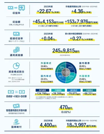 【速報】公的年金の積立金を運用しているGPIF、2023年成績発表「過去最高45兆4153億円の黒字(4年連続)」