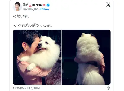 【画像】蓮舫、また犬を抱きしめる画像投稿「ただいま。ママがんばってるよ」決戦に向けラストスパートで犬再利用