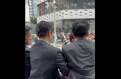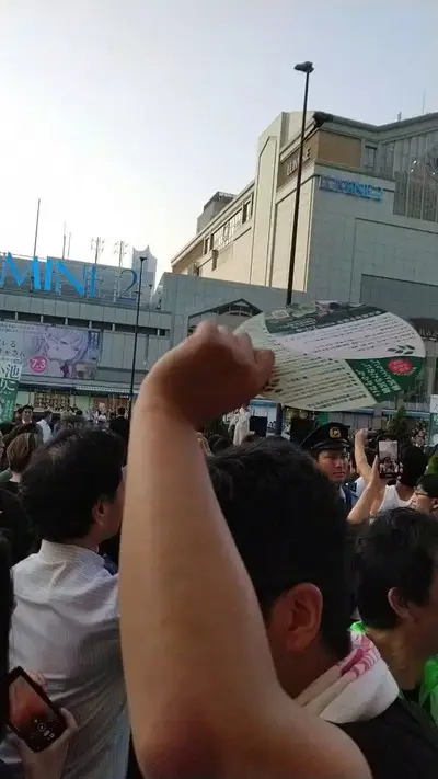【動画】小池知事演説会で男が丸ビラを投擲 区議の顔面に直撃した様子 多数のSPに現行犯逮捕される