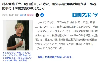【速報】ウーマン村本大輔、都知事選で期日前投票した「候補名」を公開