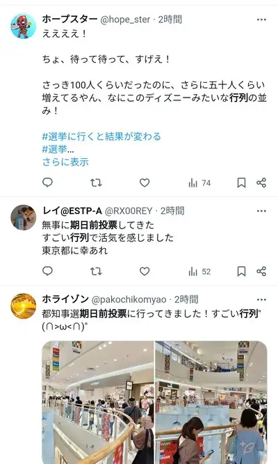 【画像】都知事選、期日前投票で物凄い行列ができてしまう