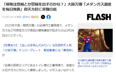 【今日のメタン濃度】「爆発注意報とか警報を出すのかな?」大阪万博「メタンガス濃度を毎日発表」仰天方針に非難の嵐