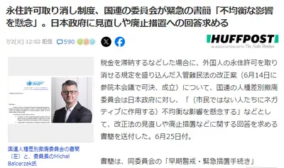 【速報】国連、永住資格剥奪にストップ!!「住民税滞納などで剥奪するのは当然人種差別だ」日本政府に見直しや廃止措置を提言