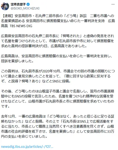 望月衣塑子さん、他社の記事を丸々コピペスクショして石丸攻撃 蓮舫さんそんなヤバいの