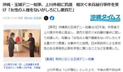 玉城デニー知事、外務省に乗り込み相次ぐ米軍の暴挙に抗議!「再発防止策を早急に講じるよう要求する」